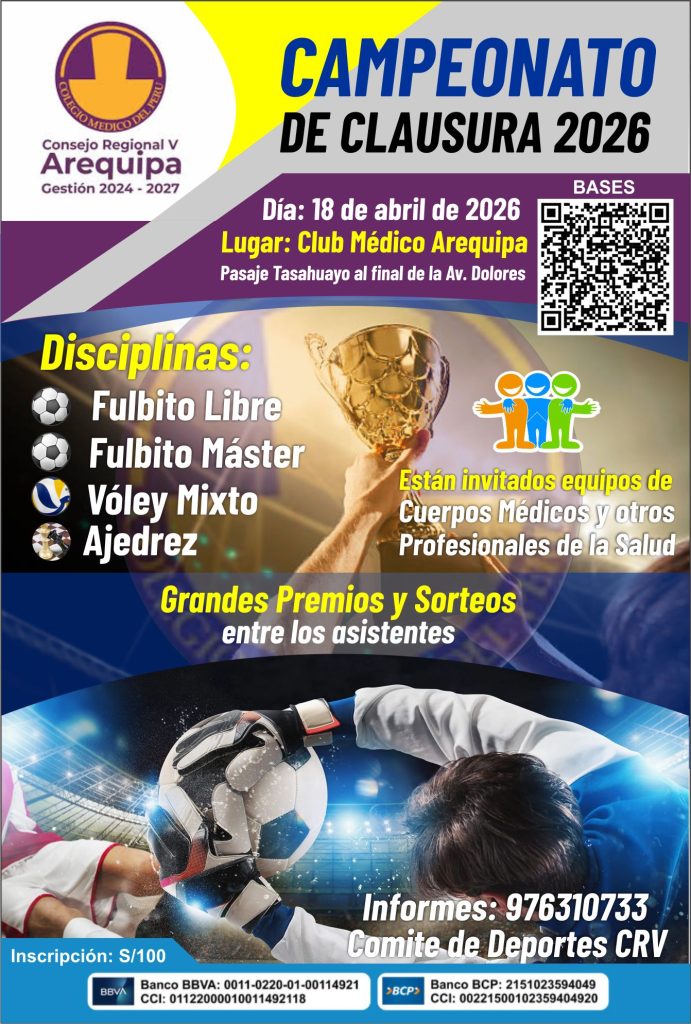 Puede ser una imagen de vóleibol y texto que dice "OR LAS BASES Campeonato de Verano 2026 Fulbito MIKASA Voley Playa เ Maratón 5k molban Futbol Tennis Net U Karaoke 구른의림 កទនន់ Con la participación de: CONSEJO TACNA 2124 -2027 CONSEJO CUSCO 2027 CONSEJO AREQUIPA 2027 CONSE CONSE น PUNO 2027 CONSEIO CONSEJO MOQUEGUA APURIMAC CθTιά 124 2027 2024 2027 DÍA 28 DE FEBRERO y 01 MARZO DEL 2026 LUGAR: CLUB LA PLAYITA EN MEJIA ORGANIZA COMITE DE DEPORTES DEL COLEGIO MEDICO AREQUIPA"